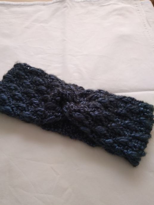 Naglavni volneni trak (s kapljicami) ženski, velikost 56, obseg traku 53 cm, barva modra-metal, novo ugodno prodam.
