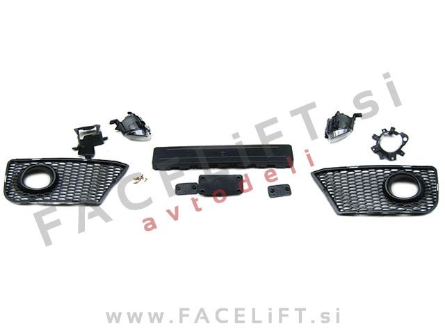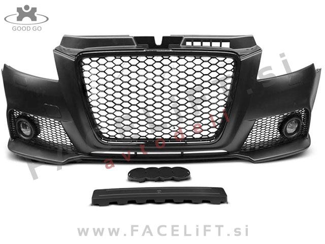 Sprednji odbijač RS3 izgled. V kompletu prejmete sprednji odbijač, mreže, masko, meglenke in ostalo kar je prikazano na sliki. Odbijač je nov in pripravljen za barvanje (v primerju).