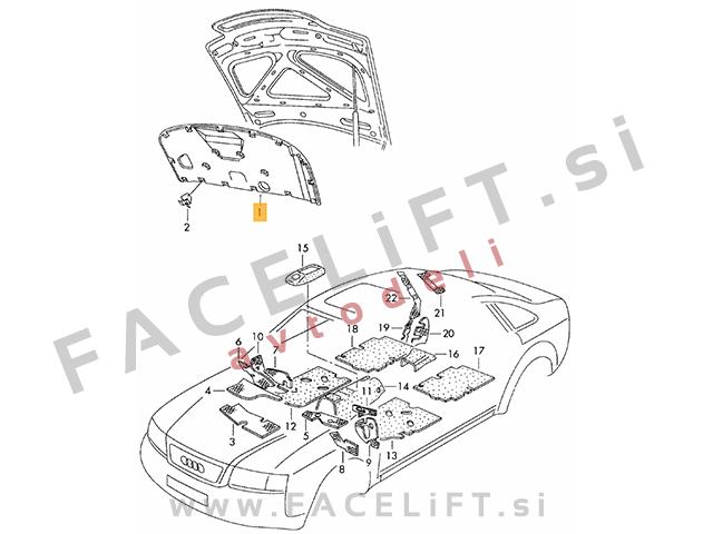 Zvočna izolacija pokrova motorja. Izolacija je nova.