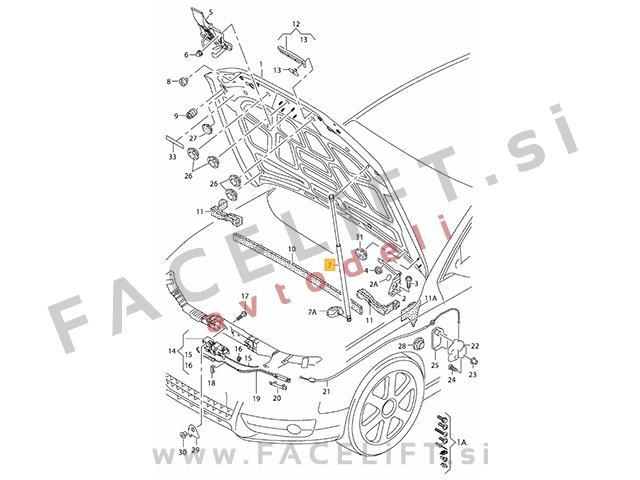 - mesto montaže: spredaj, pokrov motorja