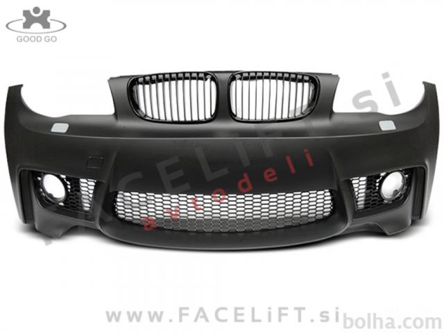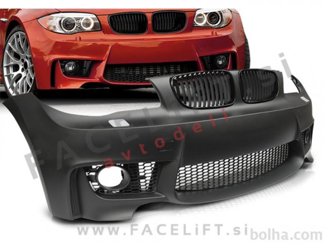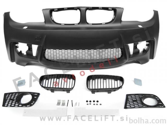 Sprednji odbijač M1 izgled. V kompletu prejmete sprednji odbijač, pokrov vlečne kljuke, pokrove sistema za pranje žarometov SRA, levo, desno, srednjo mrežo in ledvičke. Odbijač je nov in pripravljen za barvanje (v primerju).