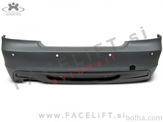 Zadnji odbijač M-Technic izgled. V kompletu prejmete zadnji odbijač z odprtinami za parkirne senzorje PDC, pokrov vlečne kljuke, difuzor z levim izpuhom in ostalo, kar je prikazano na sliki. Odbijač je nov in pripravljen za barvanje (v primerju).