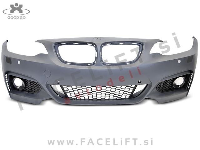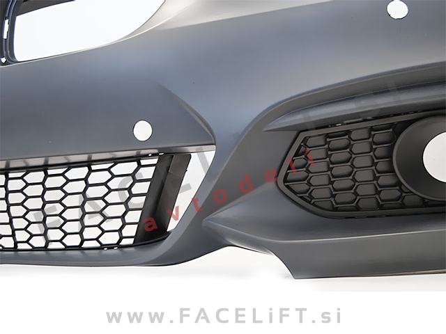 Sprednji odbijač M235 izgled. V kompletu prejmete sprednji odbijač, mreže in ostalo kar je prikazano na sliki in potrebno za montažo. Odbijač je nov in pripravljen za barvanje (v primerju).