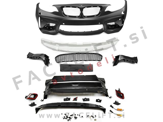 Sprednji odbijač M2 izgled. V kompletu prejmete sprednji odbijač, mreže in ostalo kar je prikazano na sliki in potrebno za montažo. Odbijač je nov in pripravljen za barvanje (v primerju).