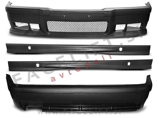 Body kit, M3 izgled. Set vsebuje sprednji odbijač s srednjo mrežo, zadnji odbijač z difuzorjem in bočne pragove.