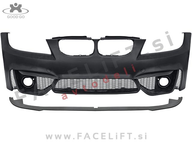 Sprednji odbijač M4 izgled. V kompletu prejmete sprednji odbijač, levo mrežo, desno mrežo, srednjo mrežo in podaljšek odbijača. Odbijač je nov in pripravljen za barvanje (v primerju).
