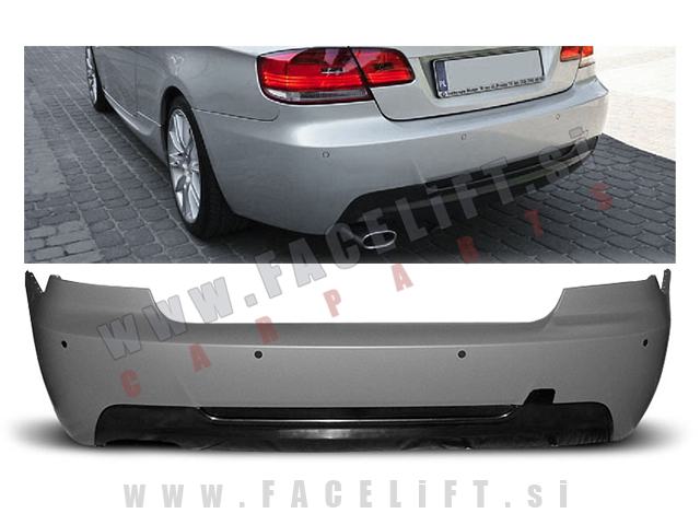 Zadnji odbijač M-Technic. V kompletu prejmete zadnji odbijač, pokrov vlečne kljuke in difuzor z levim izpuhom. Odbijač je nov in pripravljen za barvanje (v primerju).