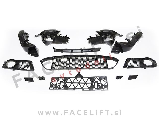 Sprednji odbijač M-Technic izgled. V kompletu prejmete sprednji odbijač, levo mrežo, desno mrežo, srednjo mrežo, pokrov vlečne, pokrove sistema za pranje žarometov SRA in ostalo kar je prikazano na sliki in potrebno za montažo. Odbijač je nov in pripravljen za barvanje (v primerju).