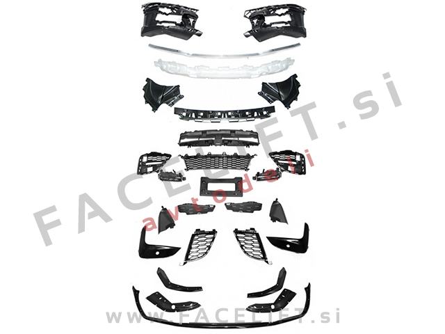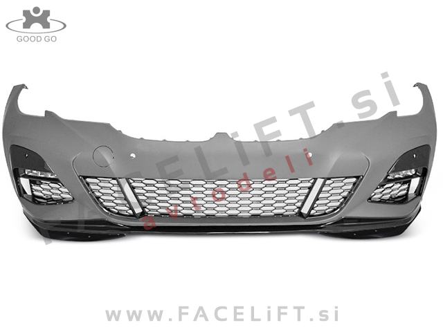 Sprednji odbijač M-Performance. V kompletu prejmete sprednji odbijač, levo mrežo, desno mrežo srednjo mrežo, LED dnevne luči, pokrov vlečne kljuke, M-Performance podaljšek odbijača in ostalo kar je prikazano na sliki in potrebno za montažo. Odbijač je nov in pripravljen za barvanje (v primerju).
