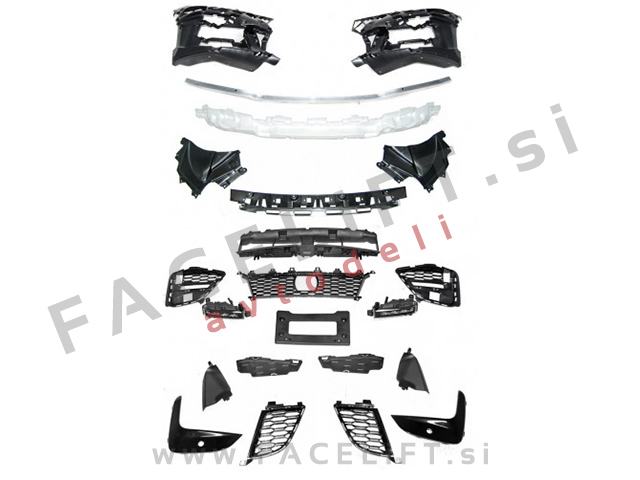 Sprednji odbijač M-Technic. V kompletu prejmete sprednji odbijač, levo mrežo, desno mrežo srednjo mrežo, LED dnevne luči, pokrov vlečne kljuke in ostalo kar je prikazano na sliki in potrebno za montažo. Odbijač je nov in pripravljen za barvanje (v primerju).