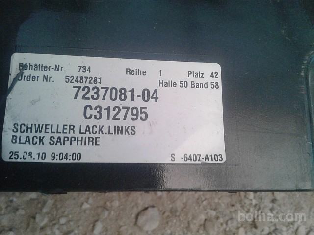 Prodam levi in desni prag za bmw F10 ali F11. Cena je 70eur/kom. Za več info pokličite.Lahko pošljem tudi po pošti. LP