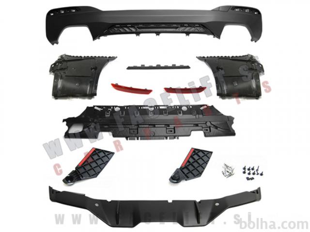 Zadnji odbijač M-Technic. V kompletu prejmete zadnji odbijač, difuzor z dvojnim izpuhom (duplex), odsevnike, pokrov vlečne kljuke in ostalo, kar je prikazano na sliki. Odbijač je nov in pripravljen za barvanje (v primerju).