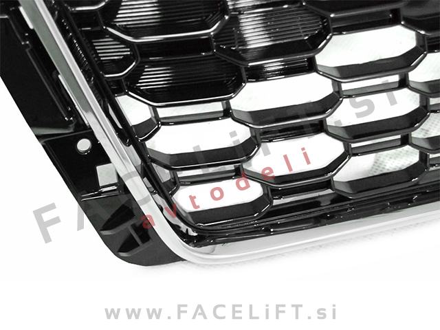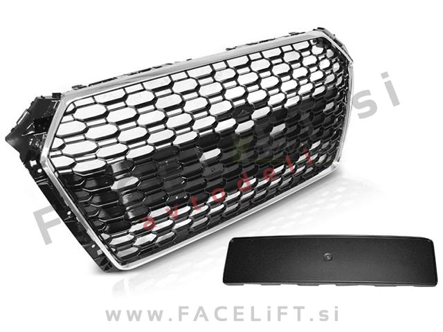 Maska motorja, RS izgled. Maska je nova. Set vsebuje masko, nosilec registrske tablice, nosilec kamere, pokrov kamere (za modele brez kamere) in nosilec Audi emblema.