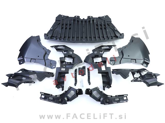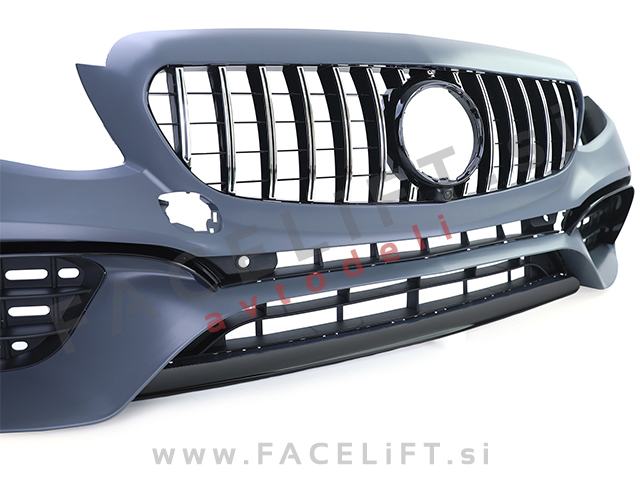 Sprednji odbijač AMG izgled. V kompletu prejmete sprednji odbijač, mreže, masko in ostalo kar je prikazano na sliki in potrebno za montažo. Odbijač je nov in pripravljen za barvanje (v primerju).