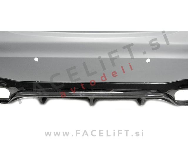 Zadnji odbijač AMG E63 izgled. V kompletu prejmete zadnji odbijač, pokrov vlečne kljuke, difuzor z dvema dvojnima odprtinama za izpušni sistem in ostalo, kar je prikazano na sliki in potrebno za montažo. Odbijač je nov in pripravljen za barvanje (v primerju).