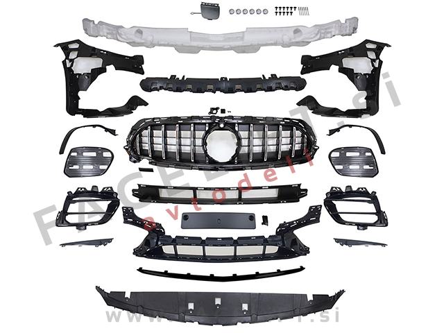 Sprednji odbijač AMG izgled. V kompletu prejmete sprednji odbijač, levo mrežo, desno mrežo, masko, pokrov vlečne in ostalo kar je prikazano na sliki in potrebno za montažo. Odbijač je nov in pripravljen za barvanje (v primerju).