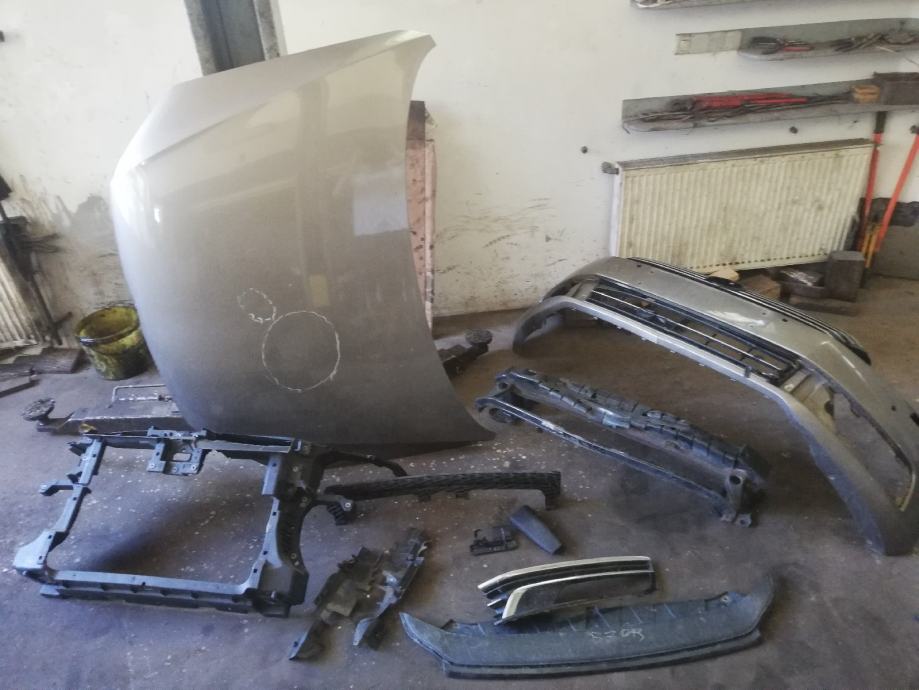 Prednji del, stena ok precni nosilec ima pokrivljen dodatni del, da se poklepati odbijac je spodaj pocen, vse vidno na slikah, pokrov motorja je udrt, da se popraviti ni hudo, maske imam 2, da se narediti 1, vidno na sliki kje je poskodovana, usmerniki zraka imajo polomljene repe dajo se priknipingati na steno, sredinski nosilec odbijaca je ok