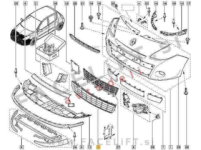 Renault Clio 3 (09-12) / mreža sprednjega odbijača / srednja (zunanja)