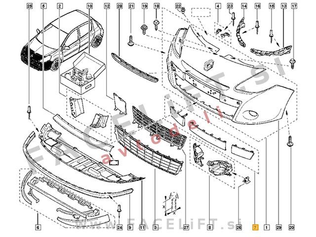 Tridelni set zaščitnih letev sprednjega odbijača. Letve je nova.