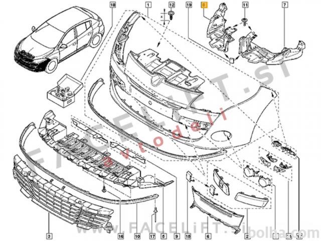 Nosilec sprednjega odbijača - žarometa. Nosilec je nov.