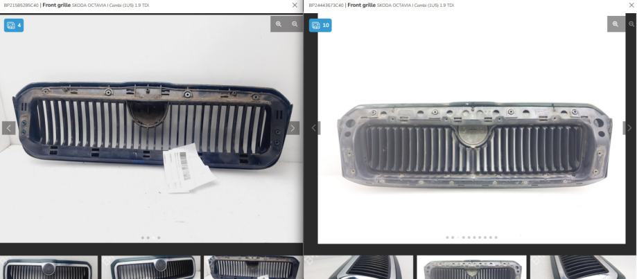 Razlika pred ali po facelift je širina plastičnega roba okrog notranjih lamel + drugačna pritrditev zadaj z nosilčki, zato mislim, da ni možna montaža na facelift Octavio (drugačen naklon in izbočenost maske). Razlike so vidne na primerjalnik dodanih slikah.