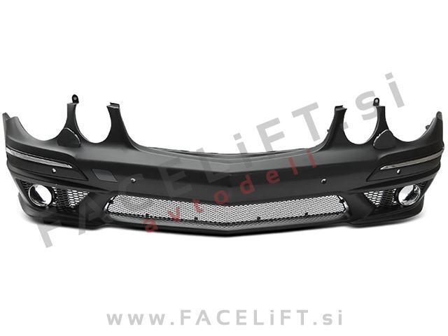 Sprednji odbijač AMG izgled. V kompletu prejmete sprednji odbijač, levo mrežo, desno mrežo, srednjo mrežo, pokrov vlečne, pokrove sistema za pranje žarometov SRA, meglenke in ostalo kar je prikazano na sliki in potrebno za montažo. Odbijač je nov in pripravljen za barvanje (v primerju).