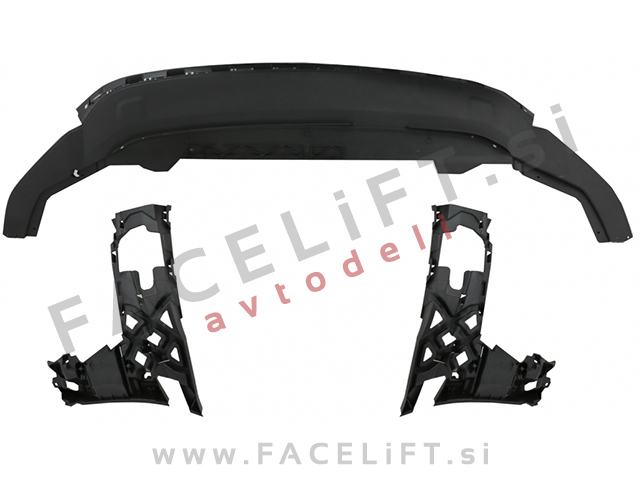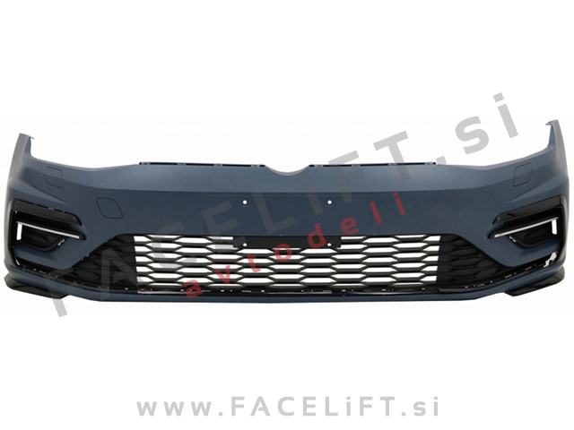 Sprednji odbijač R-Line izgled. V kompletu prejmete sprednji odbijač, levo mrežo, desno mrežo, srednjo mrežo, pokrov vlečne, pokrove sistema za pranje žarometov SRA in ostalo kar je prikazano na sliki in potrebno za montažo. Odbijač je nov in pripravljen za barvanje (v primerju).