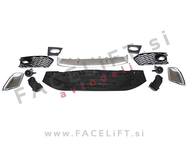Sprednji odbijač. V kompletu prejmete sprednji odbijač, levo mrežo, desno mrežo, masko, pokrov vlečne, pokrove sistema za pranje žarometov SRA in ostalo kar je prikazano na sliki in potrebno za montažo. Odbijač je nov in pripravljen za barvanje (v primerju).