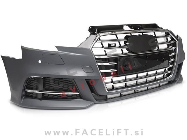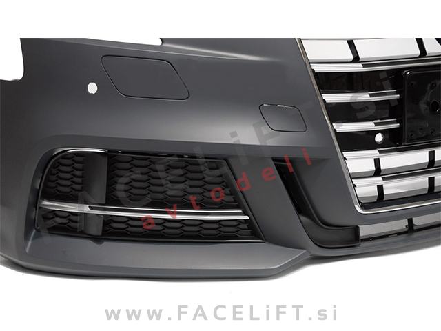 Sprednji odbijač. V kompletu prejmete sprednji odbijač, levo mrežo, desno mrežo, masko, pokrov vlečne, pokrove sistema za pranje žarometov SRA in ostalo kar je prikazano na sliki in potrebno za montažo. Odbijač je nov in pripravljen za barvanje (v primerju).