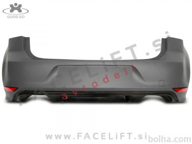 Zadnji odbijač R-Line izgled. V kompletu prejmete zadnji odbijač, pokrov vlečne kljuke, odsevnike in difuzor z dvojnim izpuhom Dupex (Twin). Odbijač je nov in pripravljen za barvanje (v primerju).