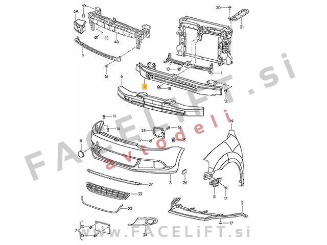 Ojačitev sprednjega odbijača. Ojačitev je nova.