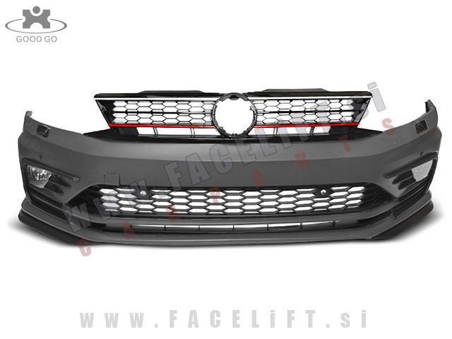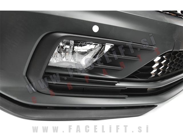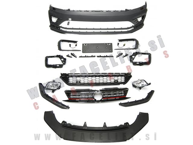 Sprednji odbijač GLI izgled. V kompletu prejmete sprednji odbijač, pokrove sistema za pravnje žarometov, pokrov vlečne kljuke, srednjo mrežo, mreže meglenk, meglenke, masko, podaljšek odbijača, zaščita odbijača in nosilec registrske tablice. Odbijač je nov in pripravljen za barvanje (v primerju).