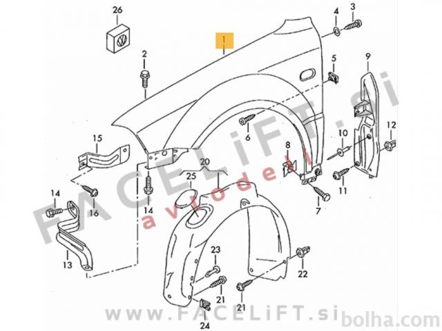 Sprednji blatnik. Blatnik je nov.