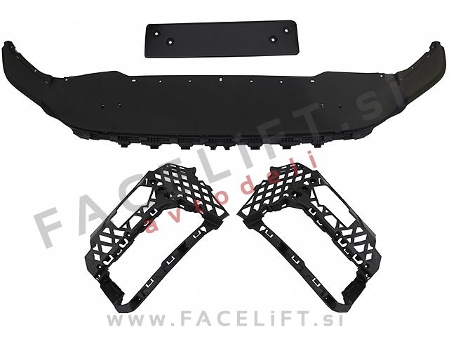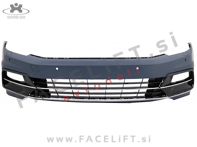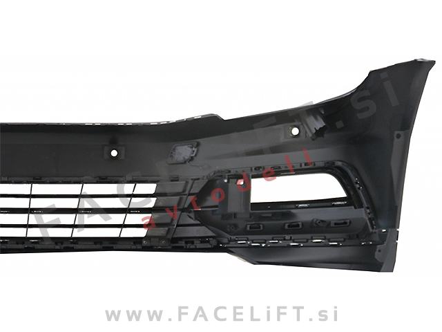 Sprednji odbijač R-Line izgled. V kompletu prejmete sprednji odbijač, mreže, okrasne letve in ostalo kar je prikazano na sliki in potrebno za montažo. Odbijač je nov in pripravljen za barvanje (v primerju).