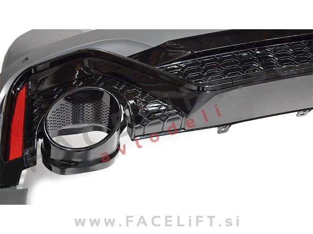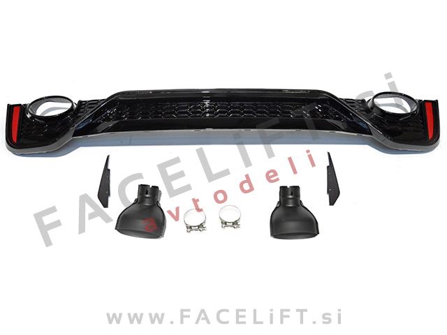 Zadnji odbijač z difuzorjem in nastavki za izpuh. V kompletu prejmete zadnji odbijač, difuzor, pokrov vlečne kljuke, nastavke za izpuh in ostalo kar je prikazano na sliki in potrebno za montažo. Odbijač je nov in pripravljen za barvanje (v primerju).