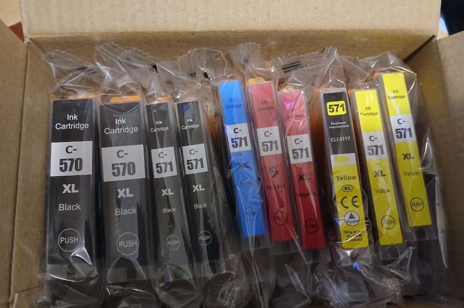 Prodam nove obnovljive kartuše za multiunkcijsko napravo Canon Pixma 6850, 2 x XL black 570, 2 x XL black 571, 3 x XL yellow 571, 2 x XL magenta 571, 1x XL cyan 571. Poštnina vključena.