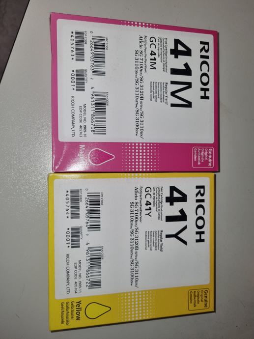 Prodam novi zapakirani Ricoh 41M in 41Y kartuši...