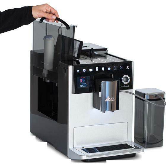 Model Latte Select je model za pripravo espresso kave in mleka. Značilno za ta model je , da lahko izbiramo med 18 različnimi recepti kave ali kave z mlekom. Set vse buje tudi PVC posodo za mleko. Dimenzije 34x47 cm . Lahko pripravimo različne recepte od espressa, cappuccino, americano, latte macchiatto,.... . Melitta Companion App nam omogoča enostavno uporabo in vse praktične nasvete na enem mestu. Led display nam pokaže vse pomembne funkcije in obvestilo, kot so prazen tank za vodo, ni več kave, kdaj je potrebno menjati filter, kdaj očistiti aparat, …lahko nastavimo temperaturo in moč kave 1400 W, samo z enim gumbom. Vklopimo aparat, počakamo 2 minute in že lahko pripravimo kavo. Močnejša aroma, višje nastavljiv izliv kave 135 mm, avtomatsko čiščenje in descaling. Avtomatski penilec za mleko je popolnoma avtomatski, posoda se lahko hrani v hladilniku. kava aparat je namenjen za domačo uporabo, ampak je izdelan iz visoko kvalitetnih materialov in napredne tehnologije. Zato je upravljanje zelo lahko. Odlično razmerje med ceno in kvaliteto. Vzdrževanje je zelo enostavno, priporoča se uporaba originalnega filtra za vodo in čistil za kavo/mleko.