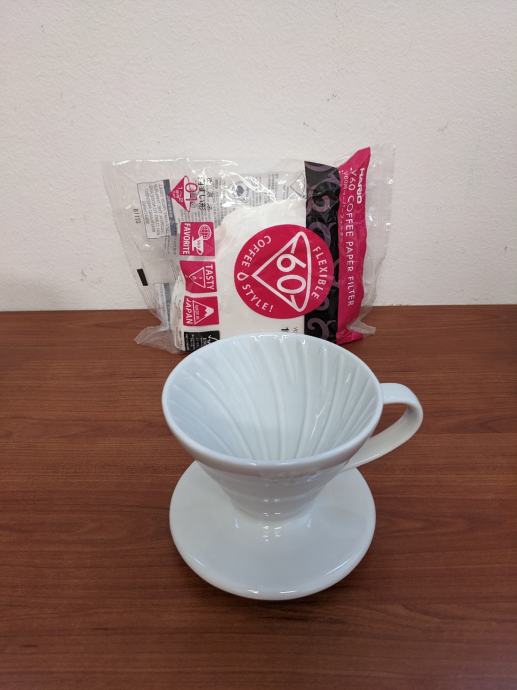 Praktično nov keramični dripper za pripravo drip filter kave, brez znakov uporabe.