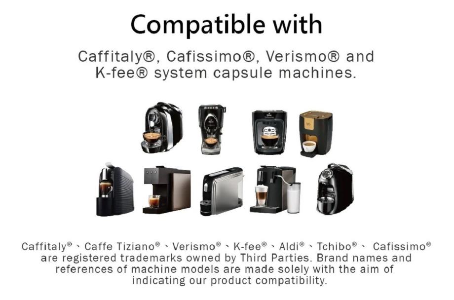 Več informacij o združljivosti s tchibo aparati na povezavi: https://sealpod.com/products/feepod-single-pack-w-paper-filter?srsltid=AfmBOorJcu0g3bj-aYx9etSm1-spauiPrPFpIHnhDmsTSh6TuMndruL8