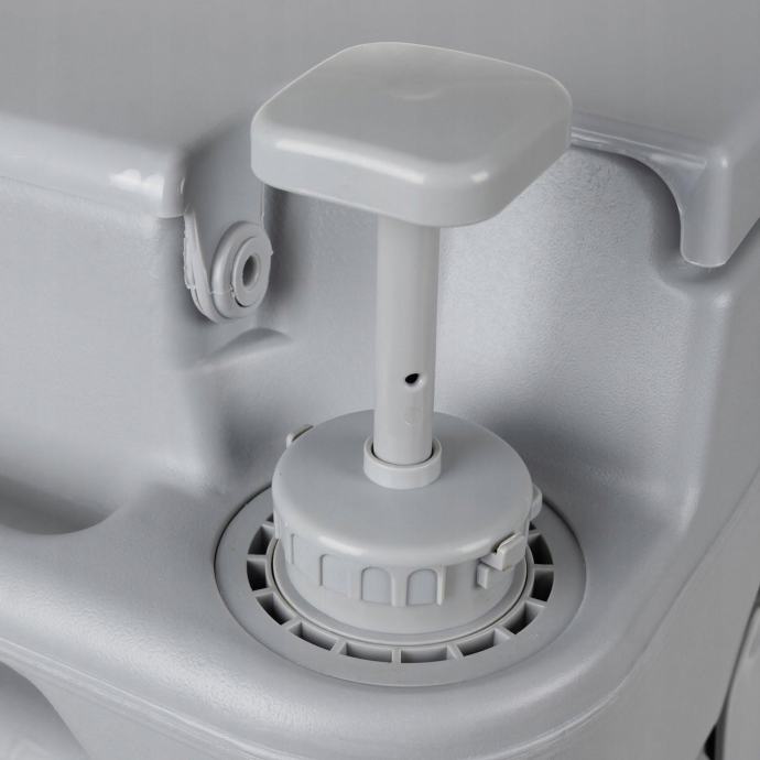 Enostavna Namestitev in Uporaba: Ta prenosni WC je zasnovan za hitro in enostavno montažo. Preprosto napolnite zgornji rezervoar z vodo, dodajte ustrezne kemične preparate in WC je pripravljen za uporabo. Priročen nosilec na vrhu omogoča enostavno prenašanje in postavitev kjerkoli.