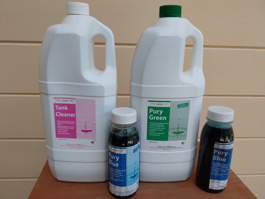 TANK CLEANER: temeljito očisti vse obloge v fekalnem tanku in tudi topi urinski kamen - v 2 litrski plastenki