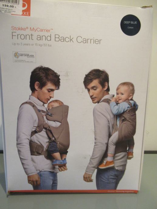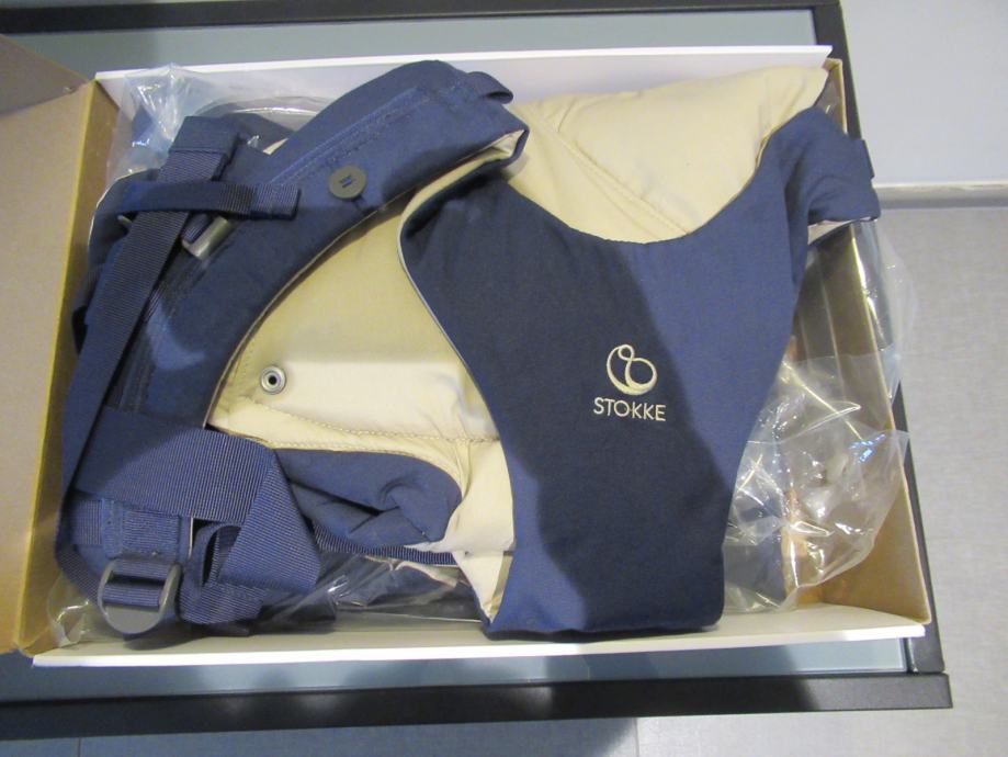 STOKKE MY CARRIER - NOV KENGURUJČEK ZA NOŠENJE OTROKA. SAMO ODPRT - ŠE NEUPORABELJEN. MODRE BARVE.