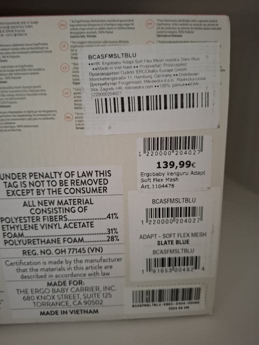 Prodam brezhiben parkrat rabljen kengurujček Ergobaby Adapt (https://ergobaby.si/izdelek/ergobaby-adapt-soft-flex-mesh-nosiljka-slate-plava/) nov 140€. Omogoča nošenje na prsih, boku in na hrbtu. Uporabljen parkrat samo za nošenje 2,5 mesečnega dojenčka na prsih.