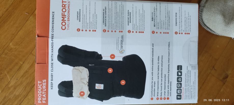 Prodamo novo nosilko - kengurujčka za otroka firme Ergobaby. Primeren za otroka od 5 - 20 kg. Možne tri pozicije nošenja, kot kažejo slike.