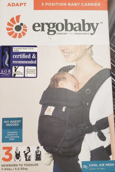 Prodam odlično ohranjeno nosilko Ergobaby Adapt Cool Air Mesh črne barve.