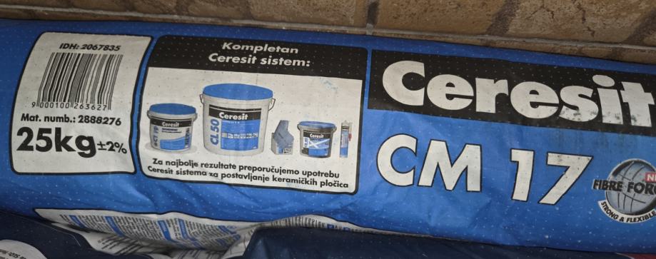 Prodam nove, nerabljene 3 (tri) vreče Ceresit CM 17 fleksibilno gel lepilo z vlakni Fibre Force za ploščice in naravni kamen večjih dimenzij. Primerno za zunanjo in notranjo upororabo. Pakirano 25 kg / vreča.