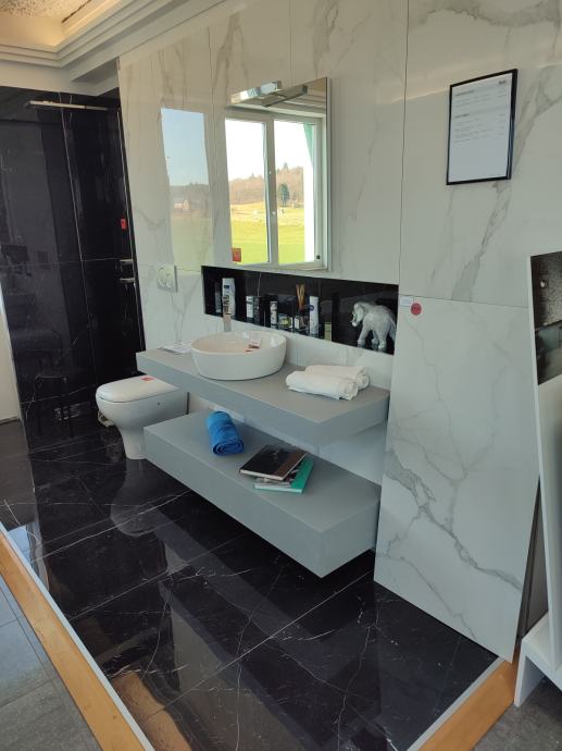 Talna-stenska polirana grez ploščica dimenzij 60x120 cm.