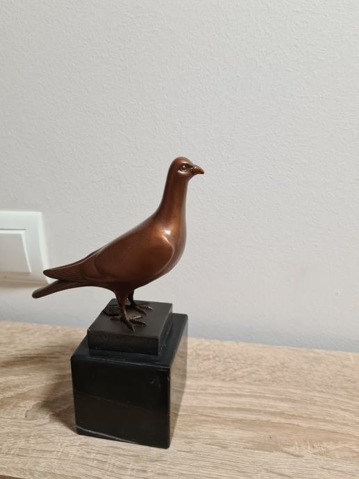 Bronasti kip goloba. Podpis na kipu: FF Wert. Višina z marmornatim podstavkom: 20 cm