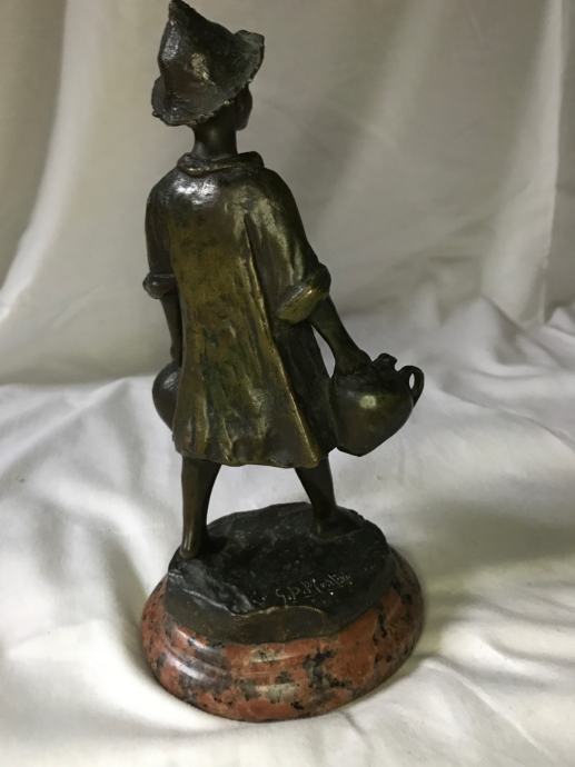Bronasti kipec prodajalca vode na marmornem podstavku. Giovani de Martino (1870 - 1935). Priznani italijanski kipar.